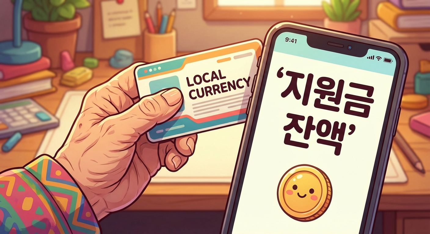 지갑을 열어 자주 사용하지 않는 카드나, 동네 상점에서 주로 사용하는 지역화폐 카드가 있는지 살펴보세요. 대부분의 지원금은 해당 지역에서만 사용 가능한 카드에 충전됩니다.