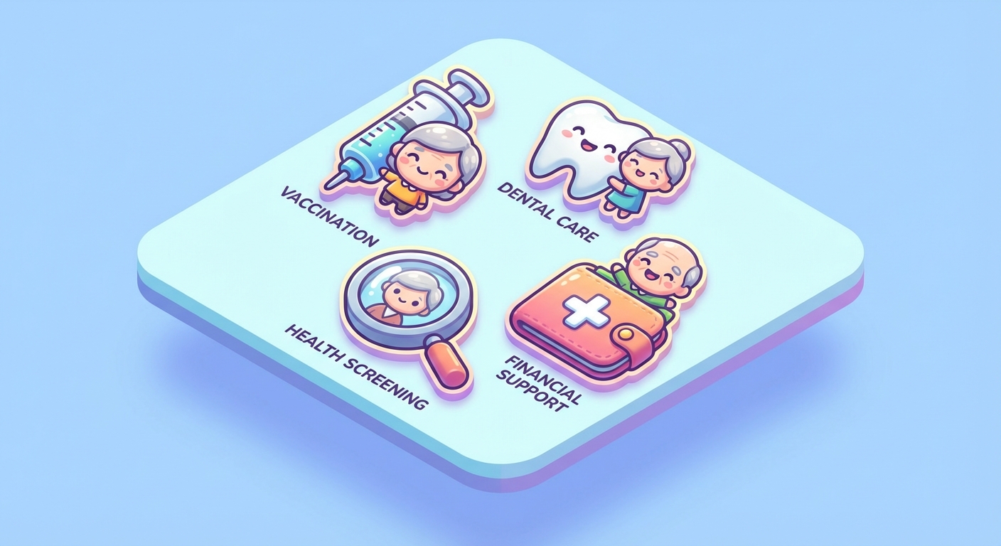 - 인플루엔자(독감) 예방접종: 매년 가을부터 겨울까지, 만 65세 이상이라면 주소지와 상관없이 신분증만 지참하면 전국 지정 의료기관이나 보건소에서 무료로 접종받을 수 있습니다.
