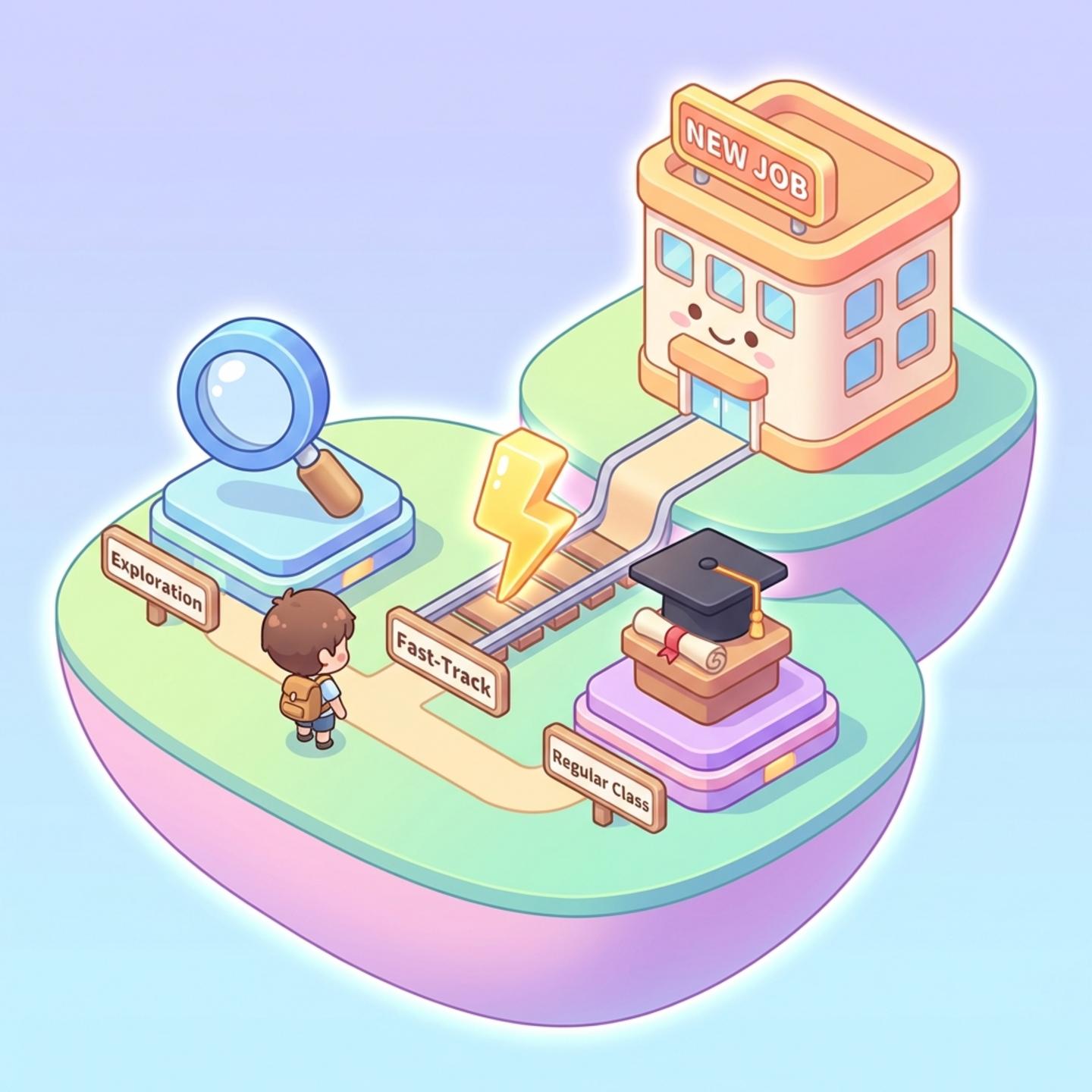 - 수준별 교육 선택: 진로 탐색(탐색반), 경력 복귀(속성반), 전문가 양성(정규반) 중 내게 맞는 과정을 선택하세요.